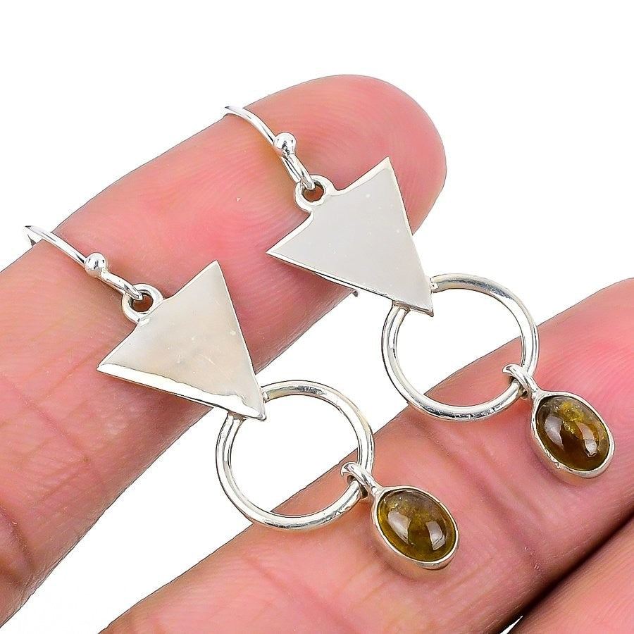 Seraphinite Stone 925 Sterling Silver Dangle Drop Mother Hook Earrings Jewelry