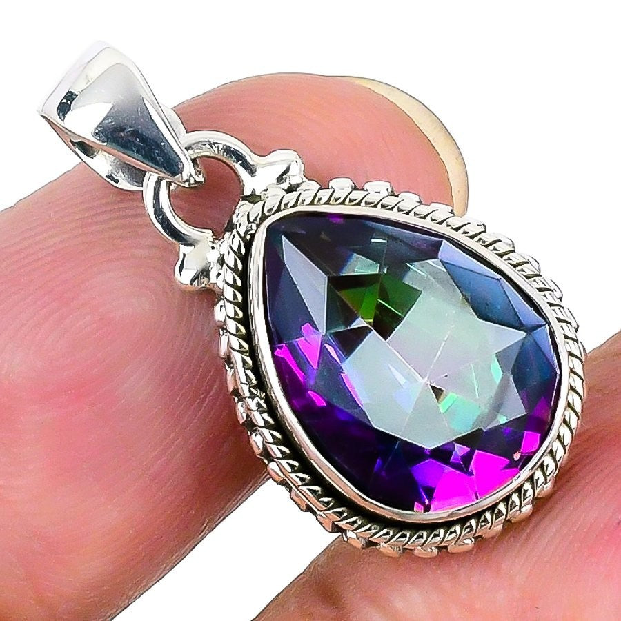 Rainbow Mystic Topaz Gemstone 925 Sterling Silver Daughter Handmade Boho Pendant