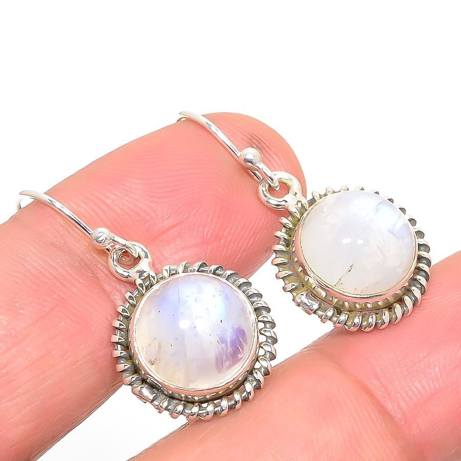 Crown Chakra Rainbow Moonstone Stone 925 Silver Dangle Birthday Earrings Jewelry