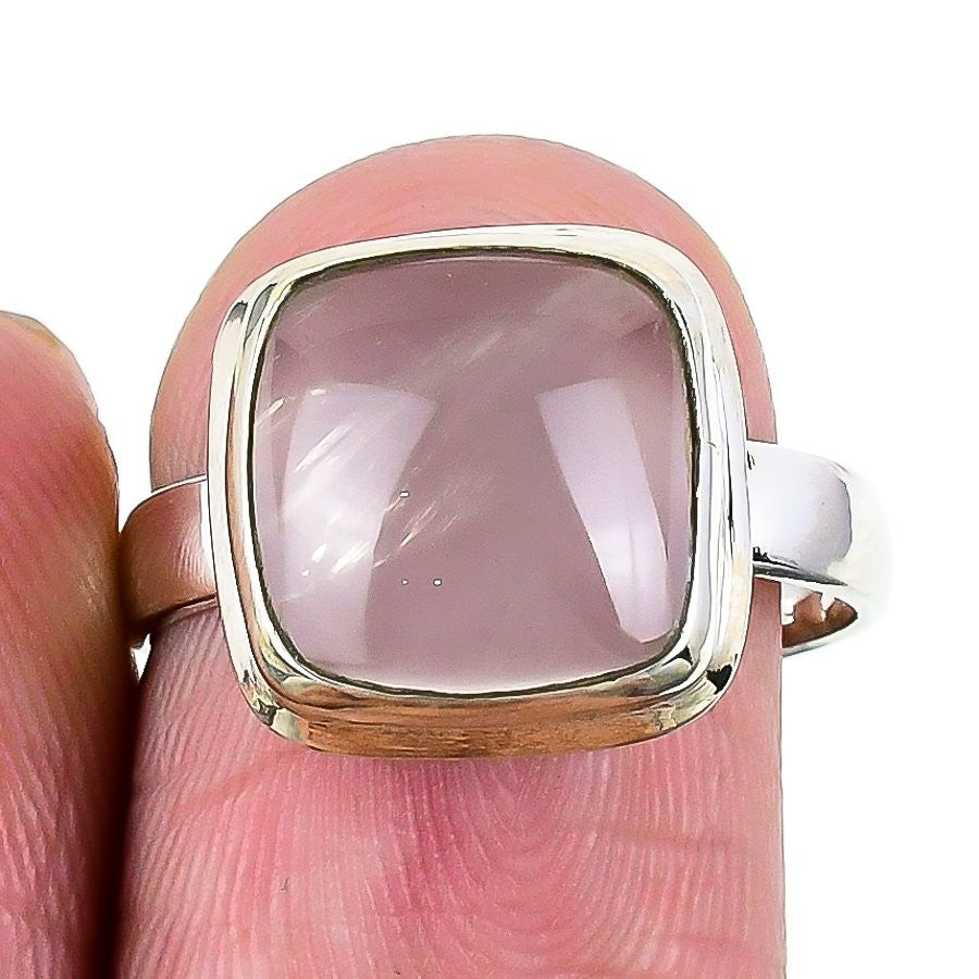 Natural Rose Quartz 925Ā SolidĀ Silver Elegant Wedding Wife Statement Ring Size 8
