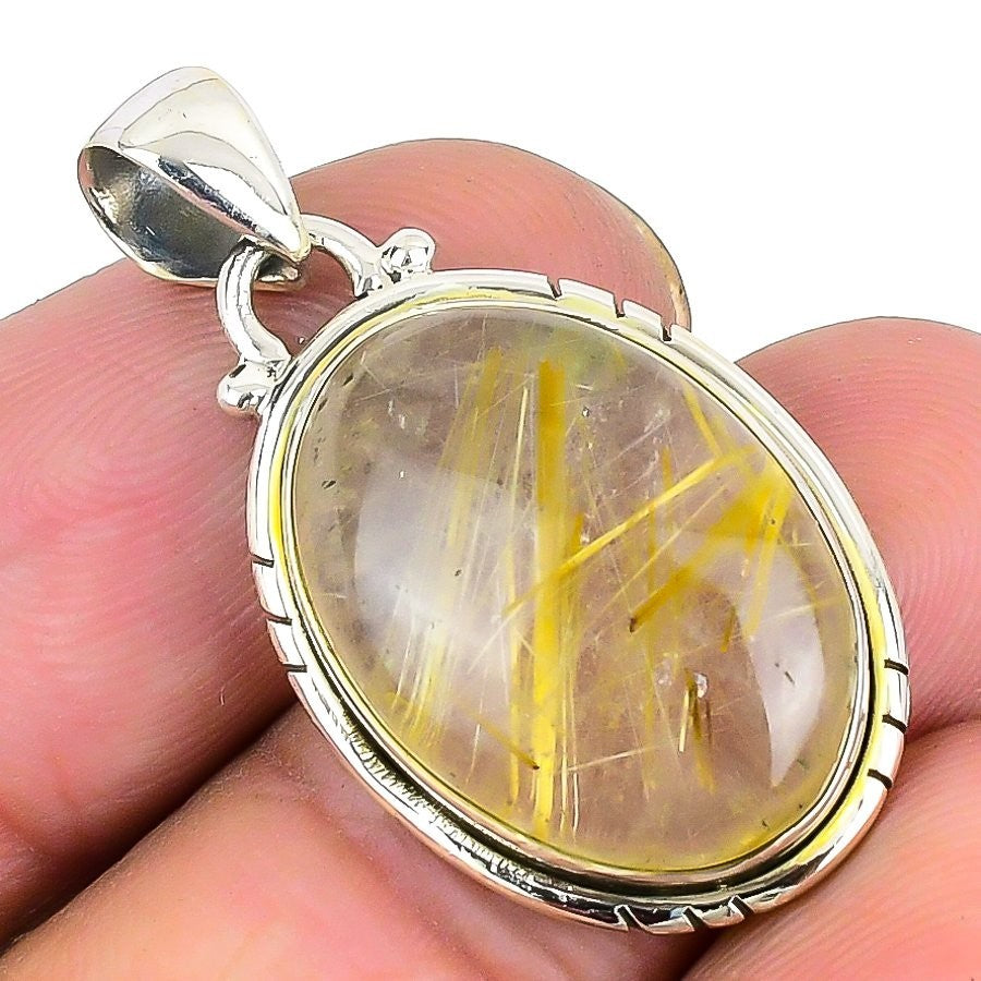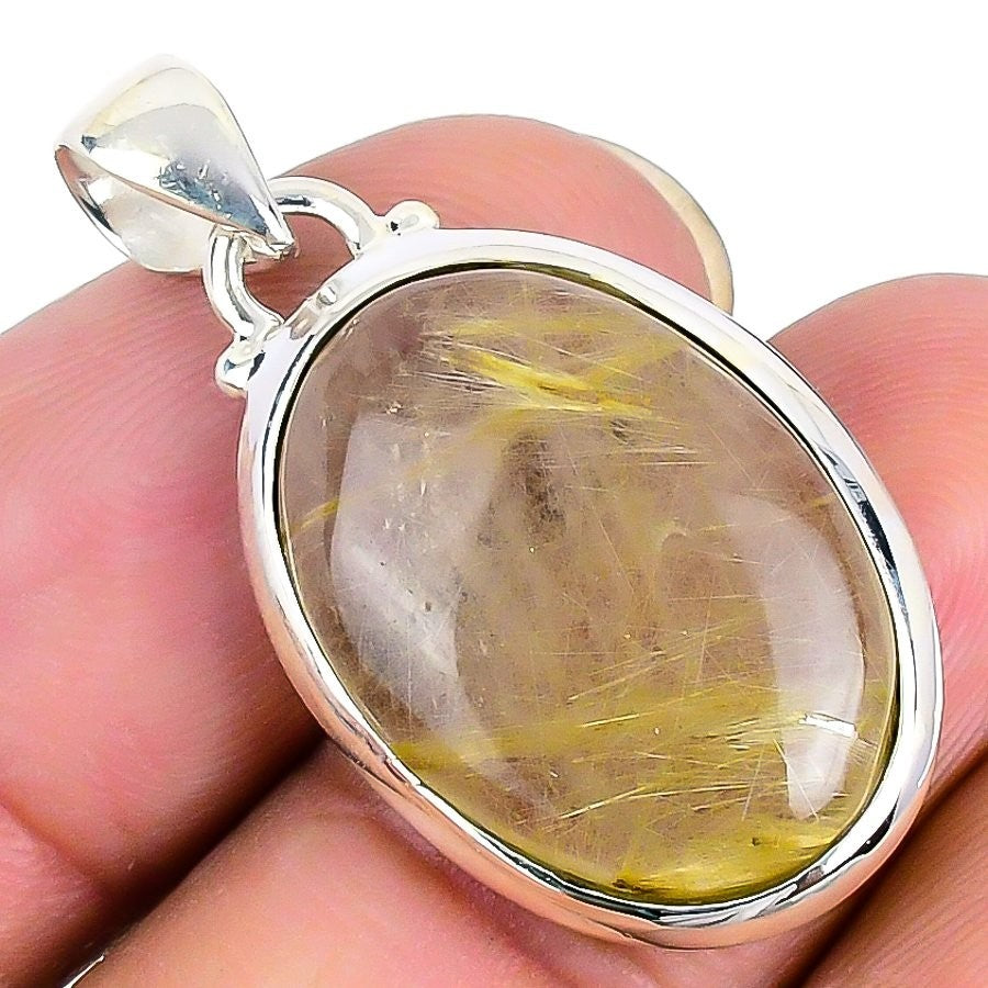 Natural Golden Rutile Daughters Day Sister Wedding Pendant 925 Sterling Silver
