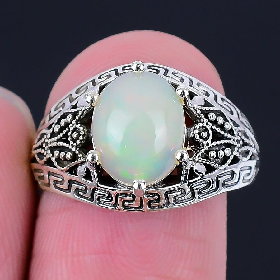 Ethiopian Opal Gemstone Mother Statement Ring Jewelry Size 8 925Ā SolidĀ Silver