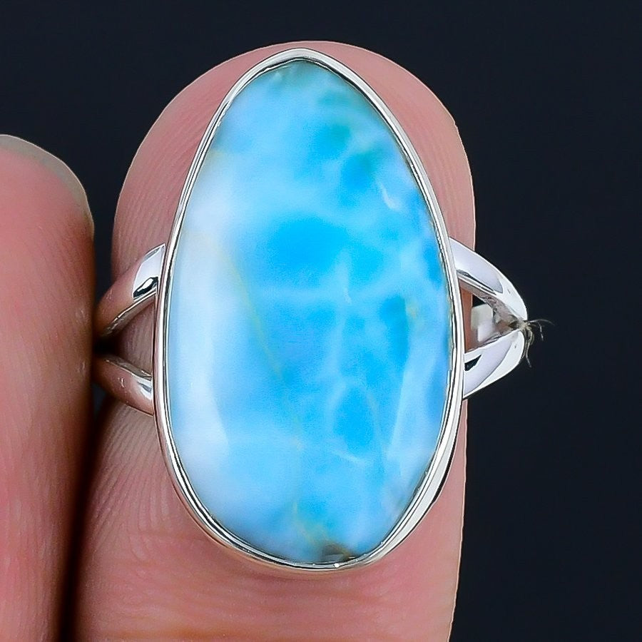 Larimar Gemstone 925 Sterling Silver Statement Daughter Gift Wife Boho Ring US 8