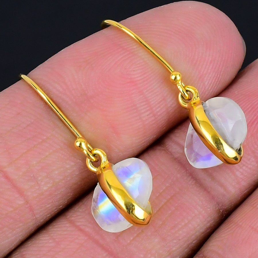 Crown Chakra Rainbow Moonstone Stone Solid Silver Drop Art Deco Hook Earrings