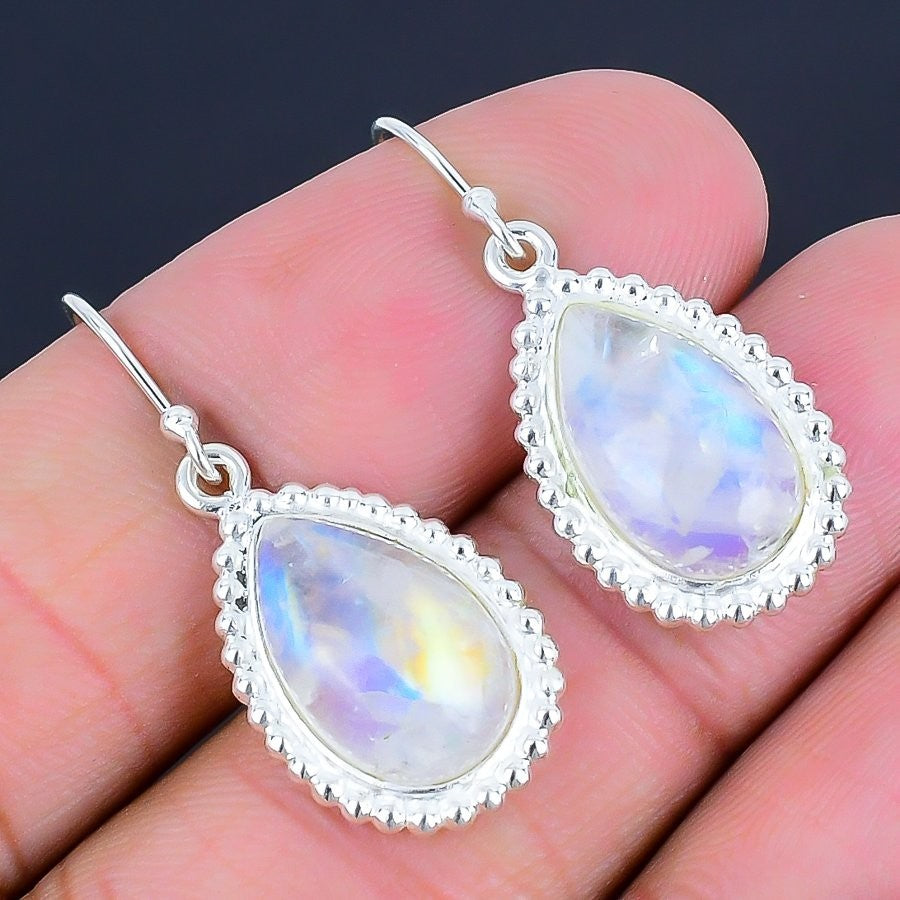 Natural Rainbow Moonstone Drop Daughters Day Mother Earrings 925Ā SolidĀ Silver