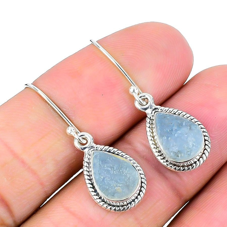 Aquamarine Stone 925 Sterling Silver March Dangle Drop Sister Earrings Jewelry