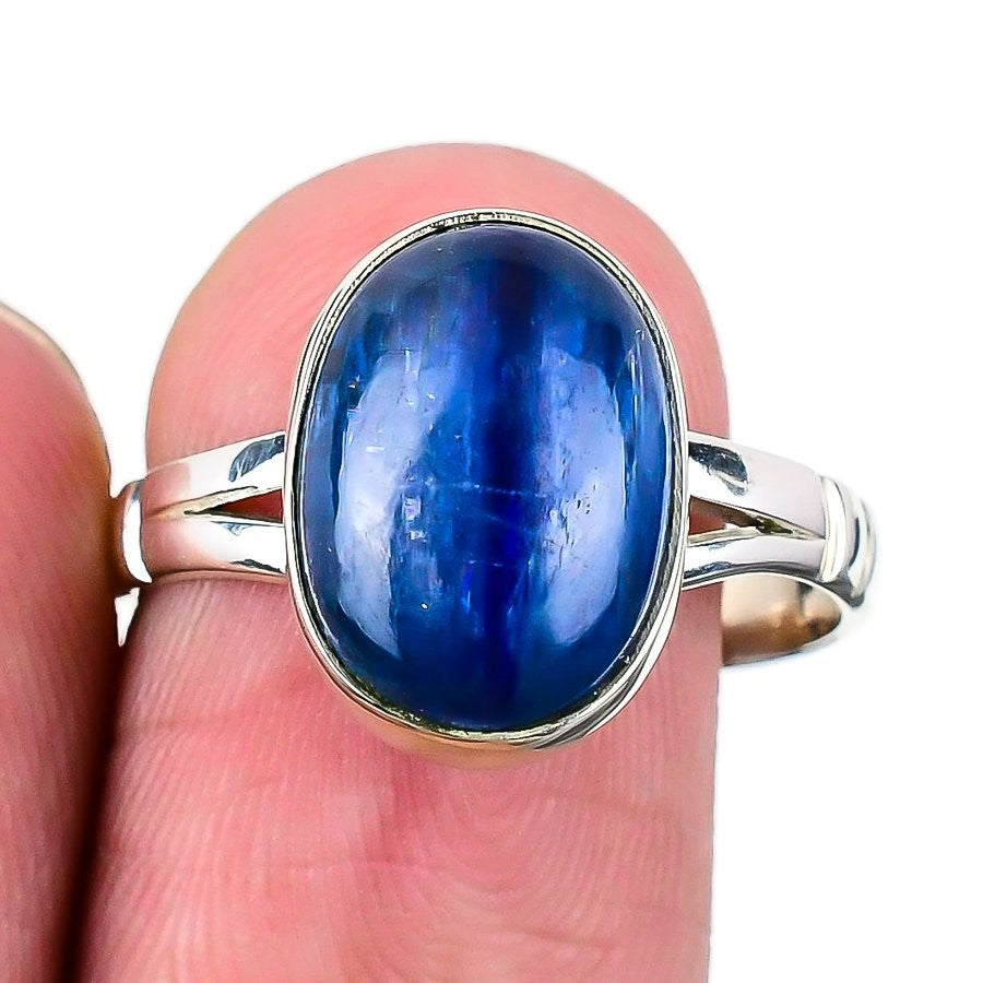 Blue Kyanite Stone 925 Sterling Silver Art Deco New Statement Throat Chakra Ring