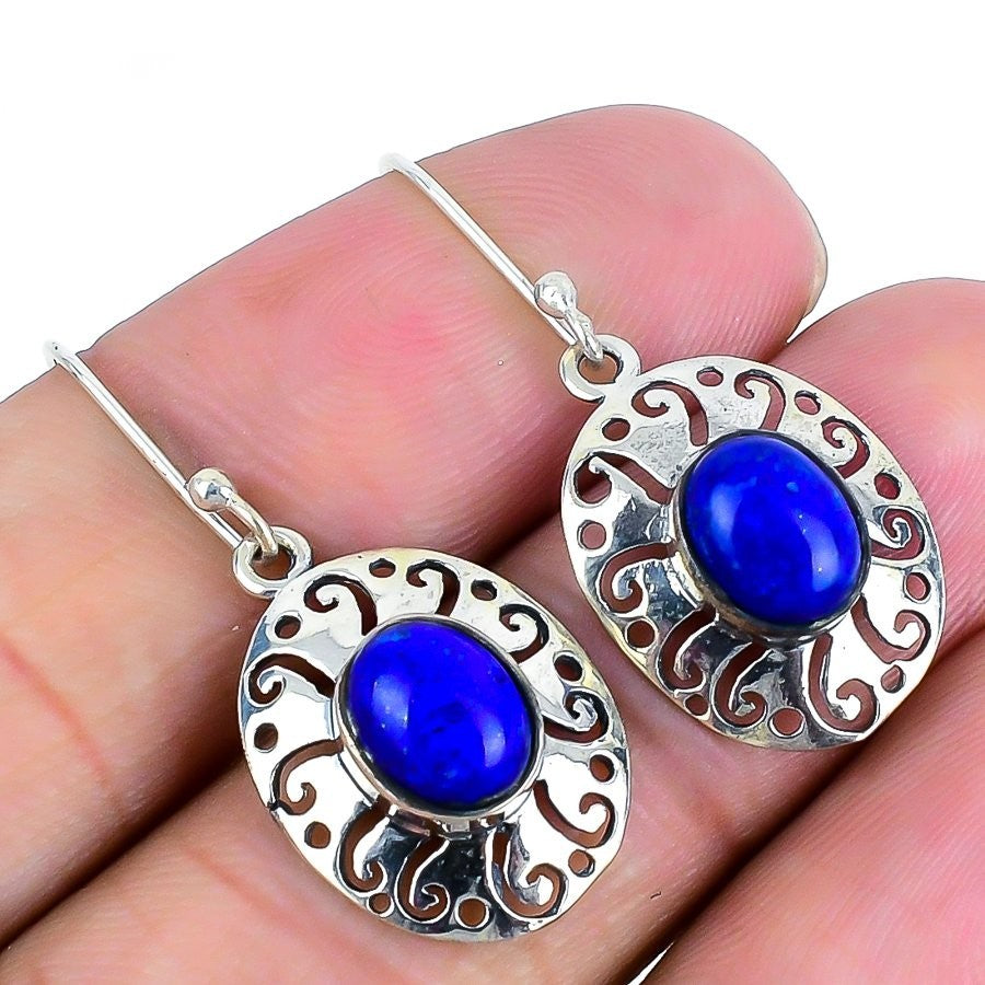 Natural Lapis Lazuli Solid Sterling Silver Drop Dangle Daughter Gift Earrings