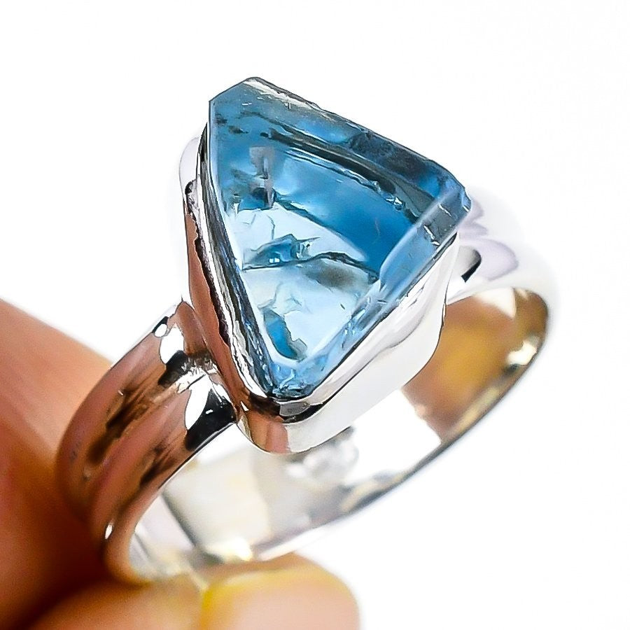 Aquamarine Stone Elegant Engagement Statement Ring Jewelry Size 8 Solid Silver