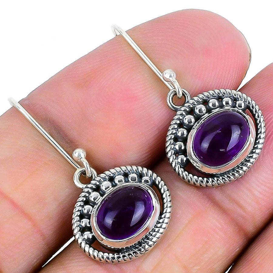 Crown Chakra Sage Amethyst Gemstone Solid Silver Sister New Drop Dangle Earrings