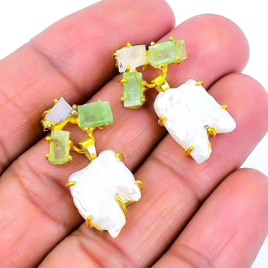 Natural Blister Pearl 925 Silver Push Back Ethnic Dangle Drop Earrings Jewelry