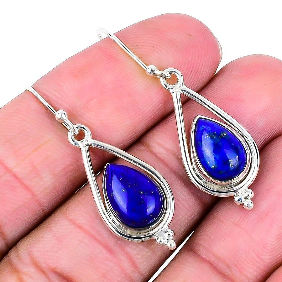 Lapis Lazuli Gemstone Sterling Silver Drop Dangle Hook Mother Wedding Earrings