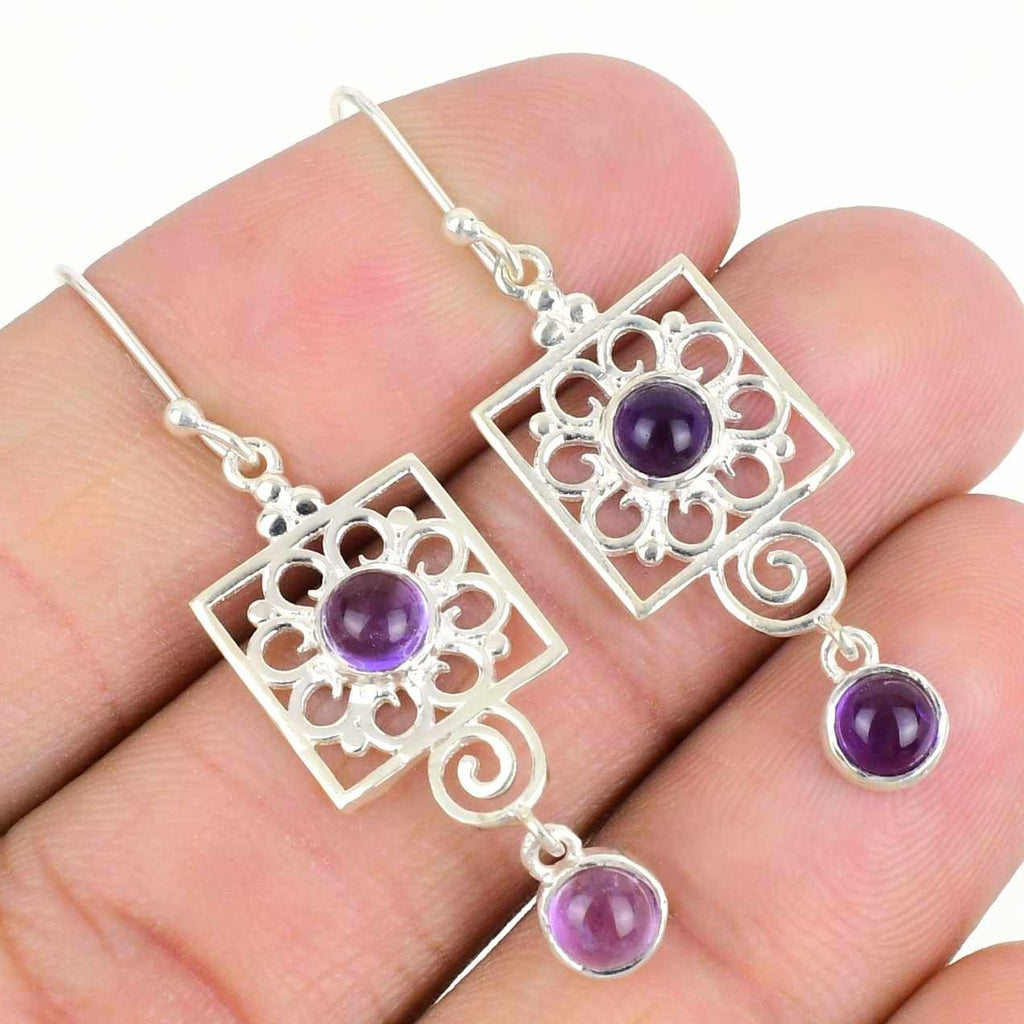 Natural Amethyst Solid Sterling Silver Dangle Drop Hook February Birth Earrings