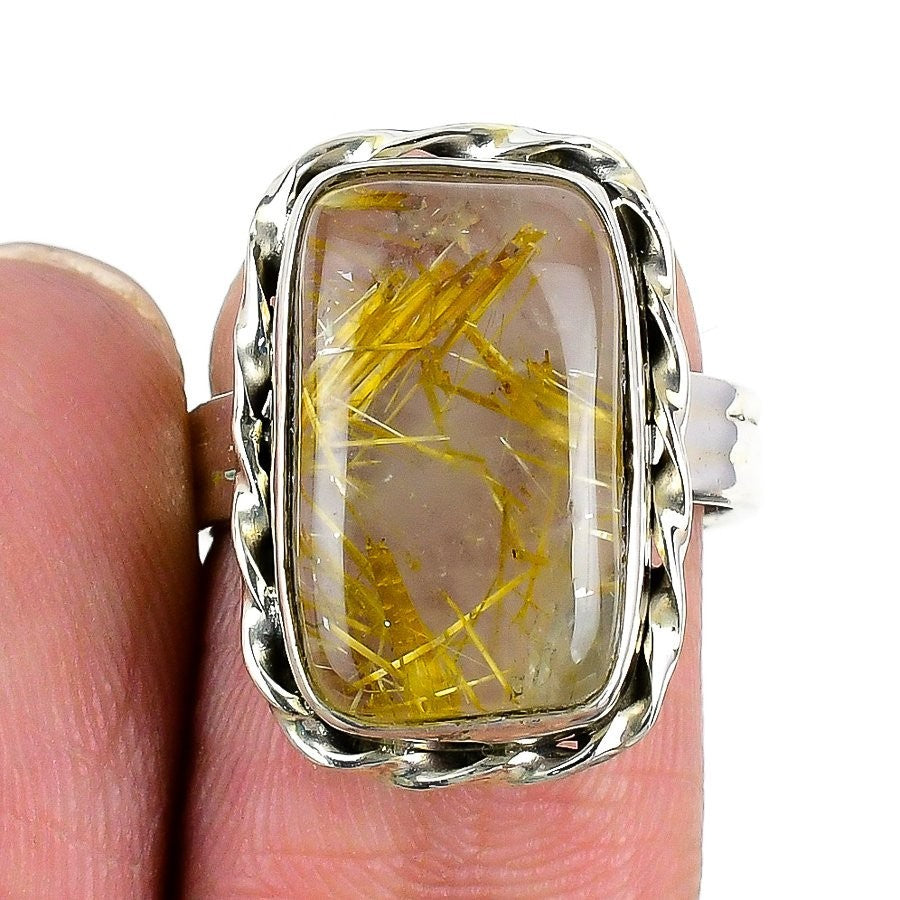 Golden Rutile Gemstone Solid Silver Statement Wedding Unique Ring Jewelry Size 7