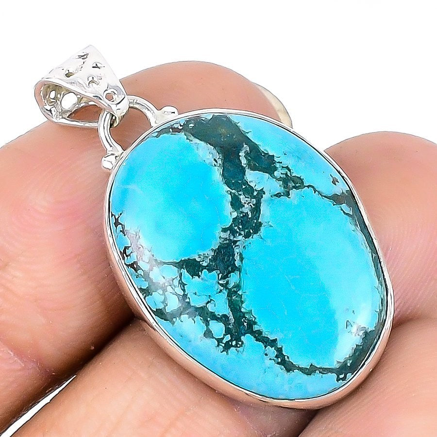 Throat Chakra Tibetan Turquoise Stone Wedding Pendant Jewelry 925Ā SolidĀ Silver