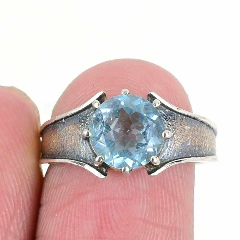 Swiss Blue topaz Gemstone 925 Sterling Silver Unique Cluster Ring Jewelry Size 7