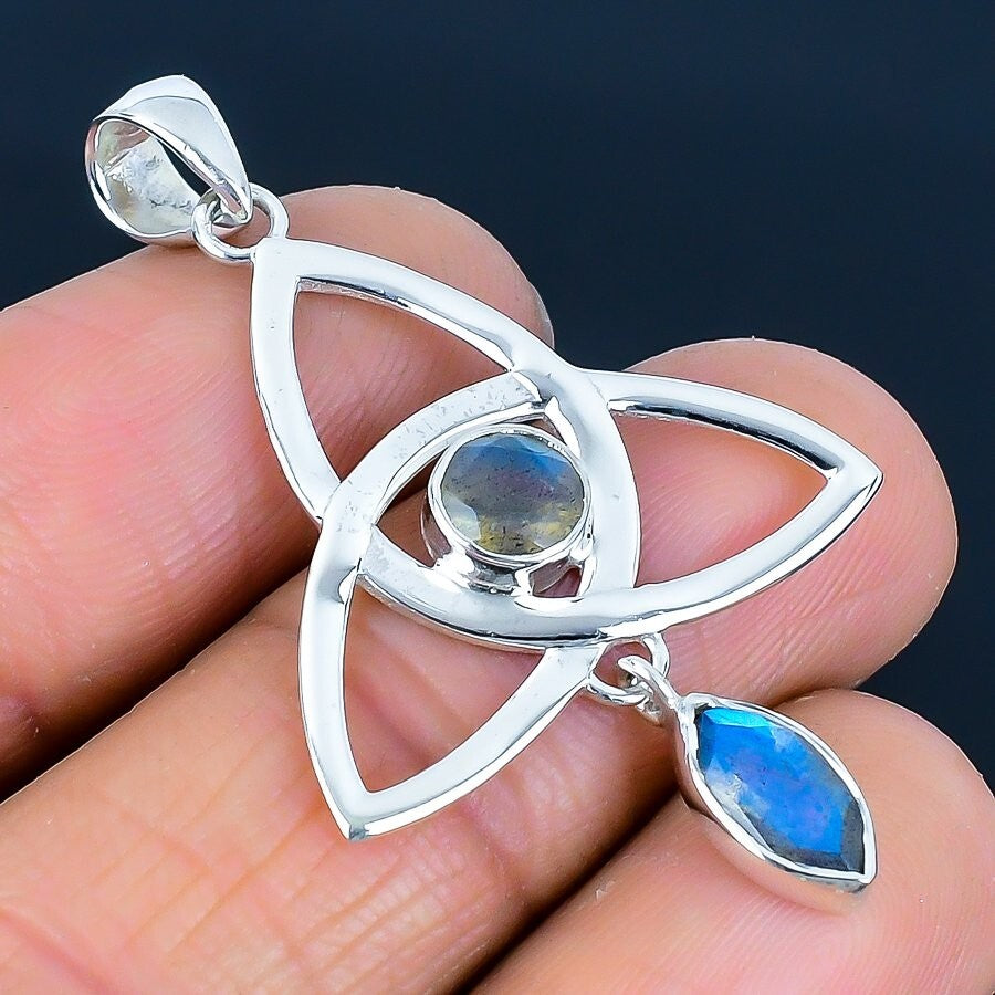 Natural LabrAdjustableorite Faceted Solid Silver Birthday Ethnic Pendant Jewelry
