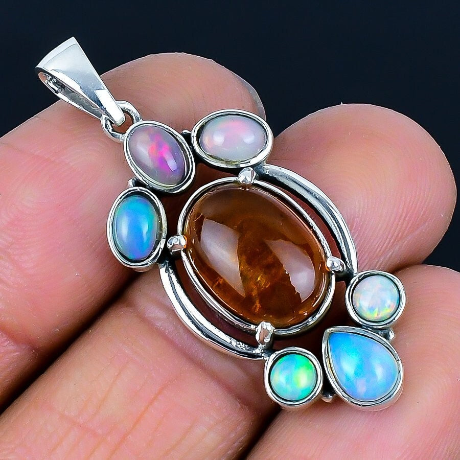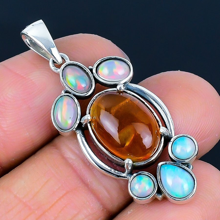 Mothers day Sale Natural Baltic Amber 925 Silver Sacral Chakra Ethnic Pendant