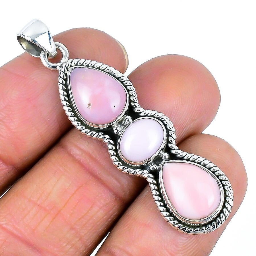 Mothers day Sale Natural Pink Opal 925 Sterling Silver Elegant Artisan Pendant