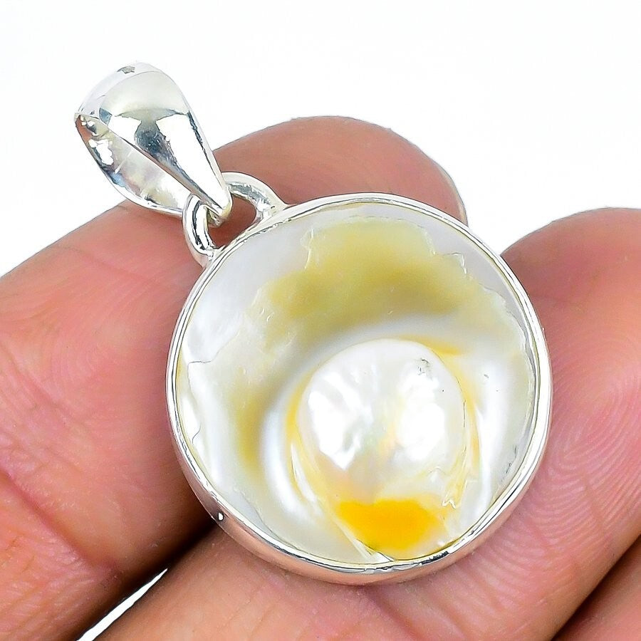 Blister pearl Gemstone Solid Silver Unique Artisan Mothers day Pendant Jewelry