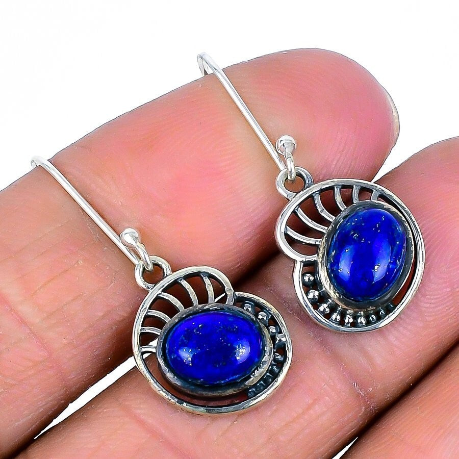 Lapis Lazuli Gemstone Solid Sterling Silver Artisan Dangle Drop Earrings Jewelry