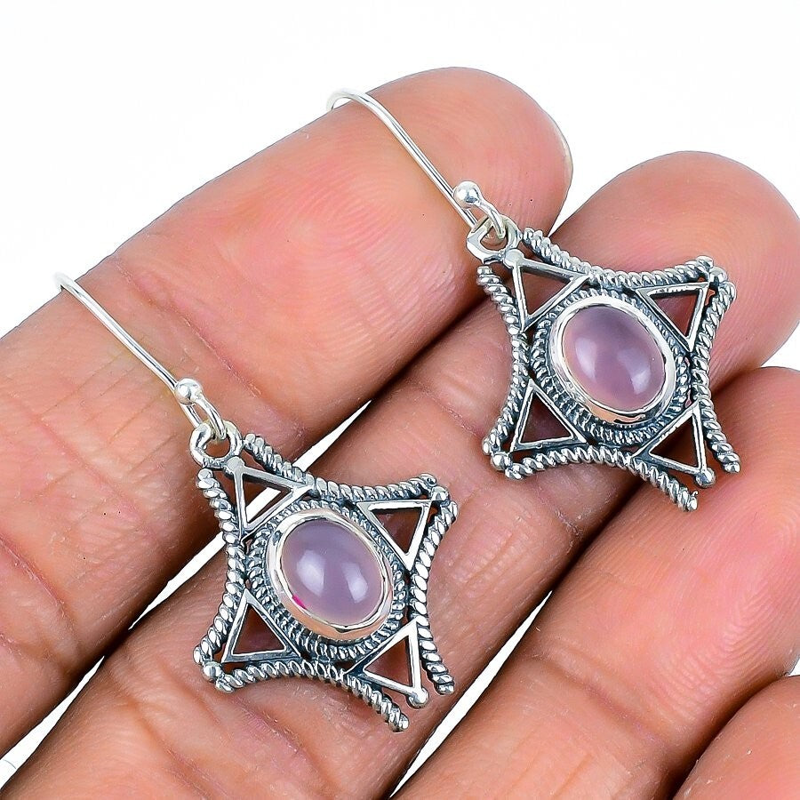 Mothers day Sale Rosequartz Stone 925 Sterling Silver Wife Drop Dangle Earrings