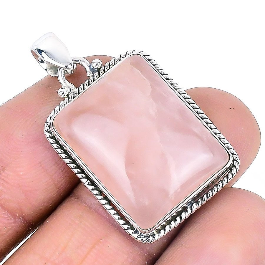 Natural Rose Quartz Heart Chakra Engagement Handcrafted Pendant 925 Solid Silver