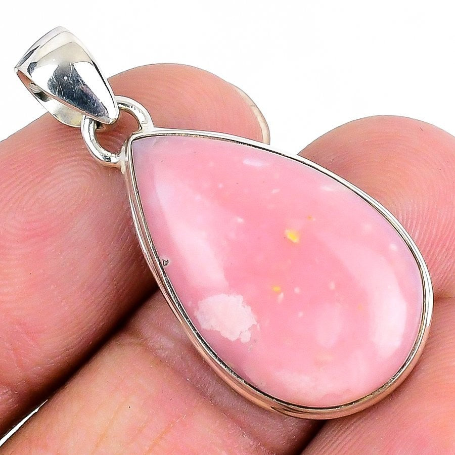 Pink Opal Stone Solid Sterling Silver Daughter Ethnic Bezel Boho Pendant Jewelry