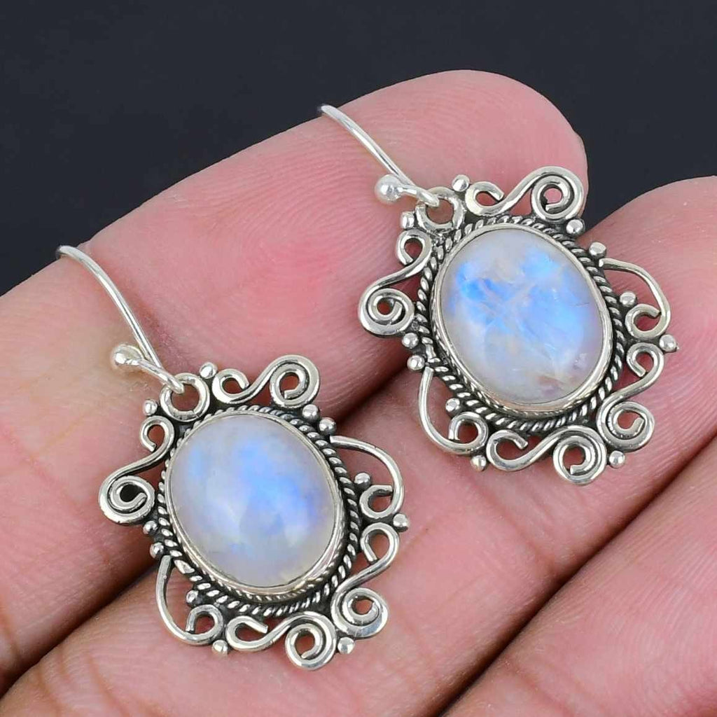 Natural Rainbow Moonstone 925 Sterling Silver Dangling Birthday Earrings Jewelry