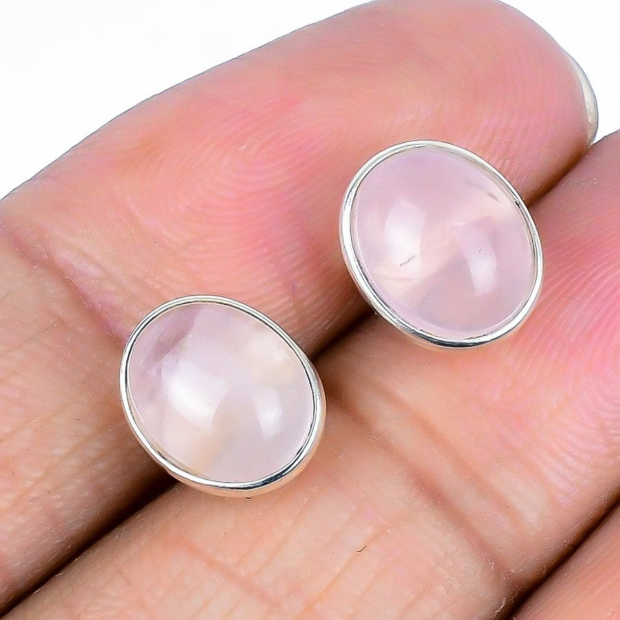 Heart Chakra Natural Rose Quartz Mother Stud Post New Earrings Sterling Silver