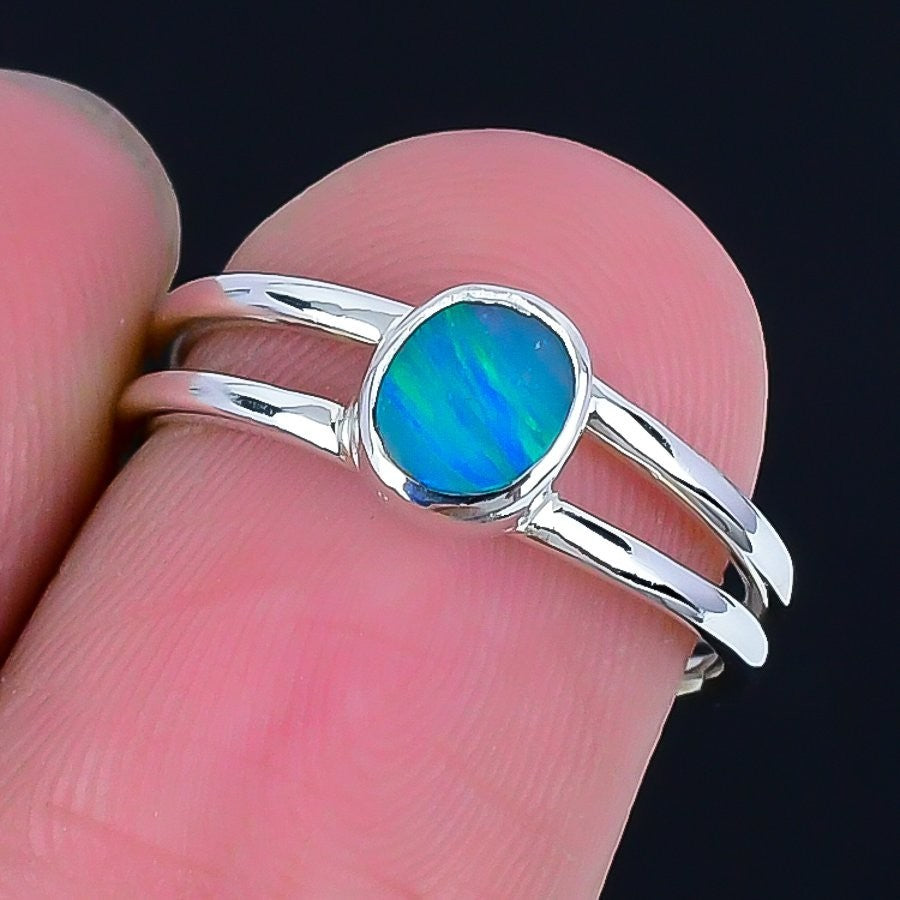 Australian Opal Stone 925 Sterling Silver Birthday Sister Cluster Ring Size 7