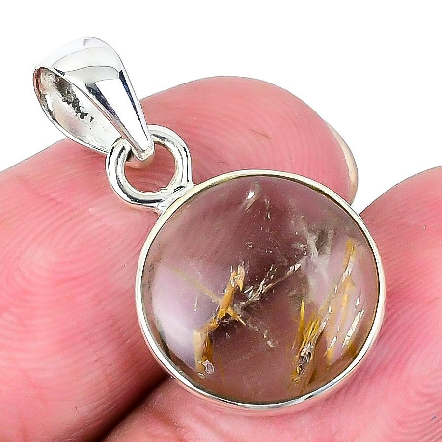 Natural Golden Rutile Sterling Silver Wife Channel Set Daughter Gift New Pendant