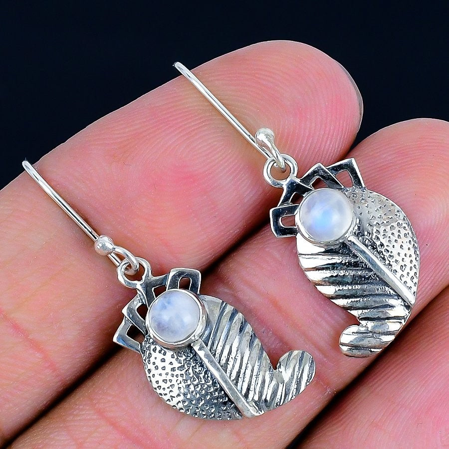 Crown Chakra Natural Moonstone Sister Boho Dangle Drop Earrings 925 Solid Silver