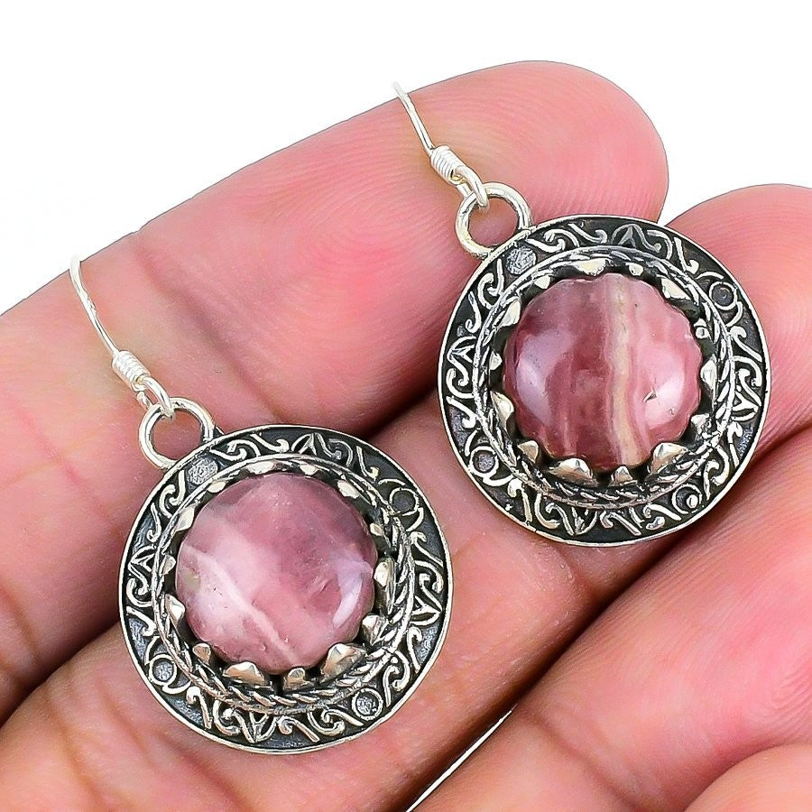 Natural Rhodochrosite Birthday Drop Dangle Sister Earrings Jewelry Solid Silver
