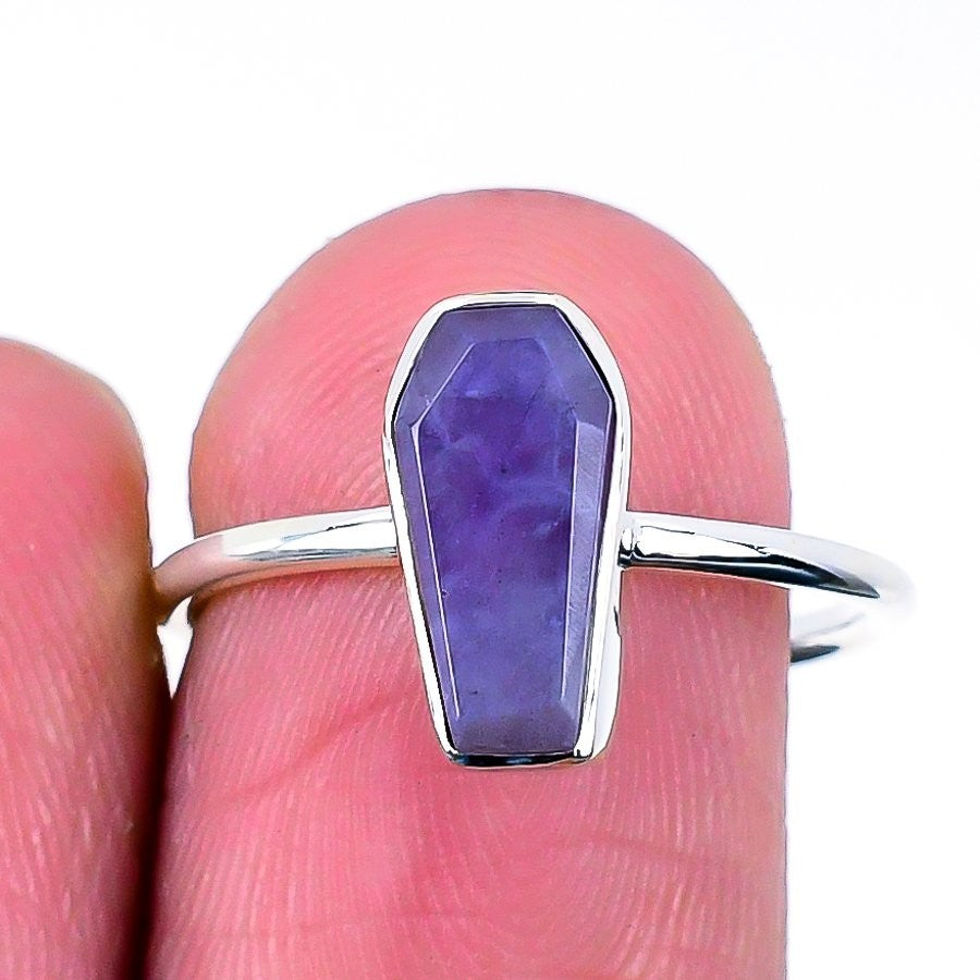 Crown Chakra Sage Amethyst Gemstone 925Ā SolidĀ Silver New Band Unique Ring Size 8