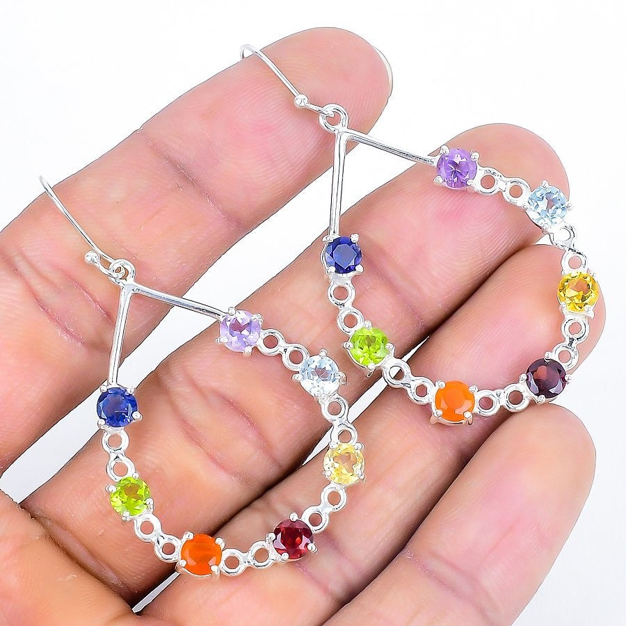 7 Chakra Stone Solid Silver Wife Art Deco Hook Drop Dangle New Earrings Jewelry