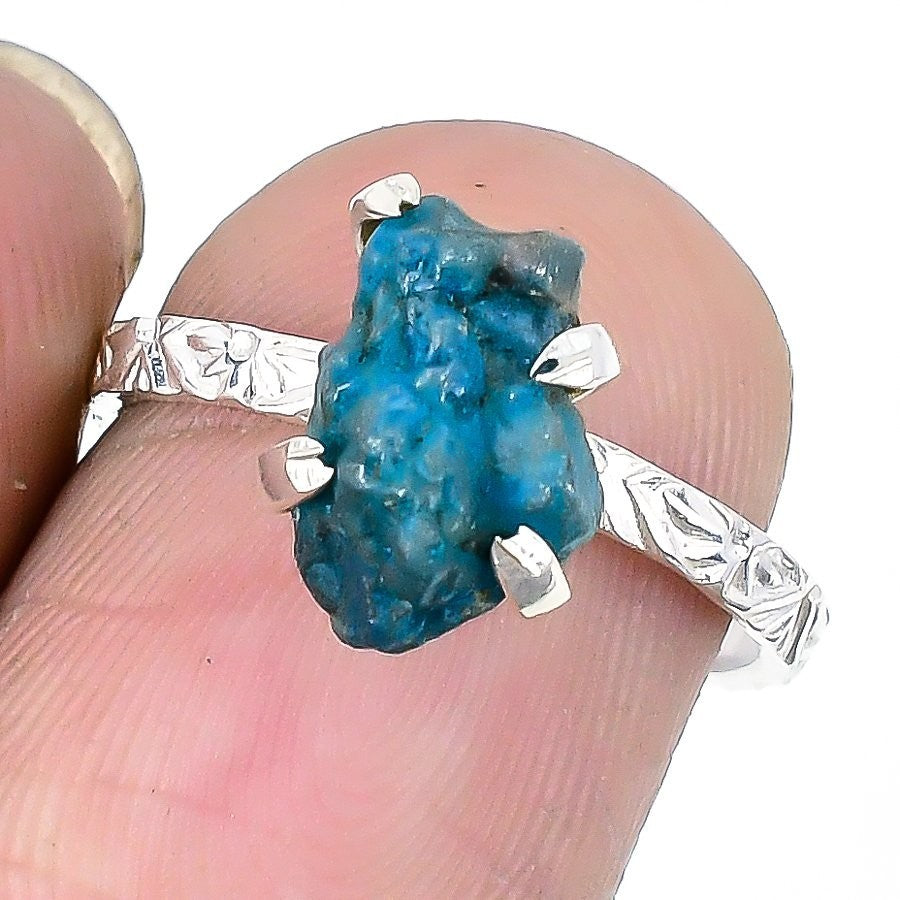 Daughters Day Sale Natural Apatite Druzy Solid Silver New Statement Ring US 7