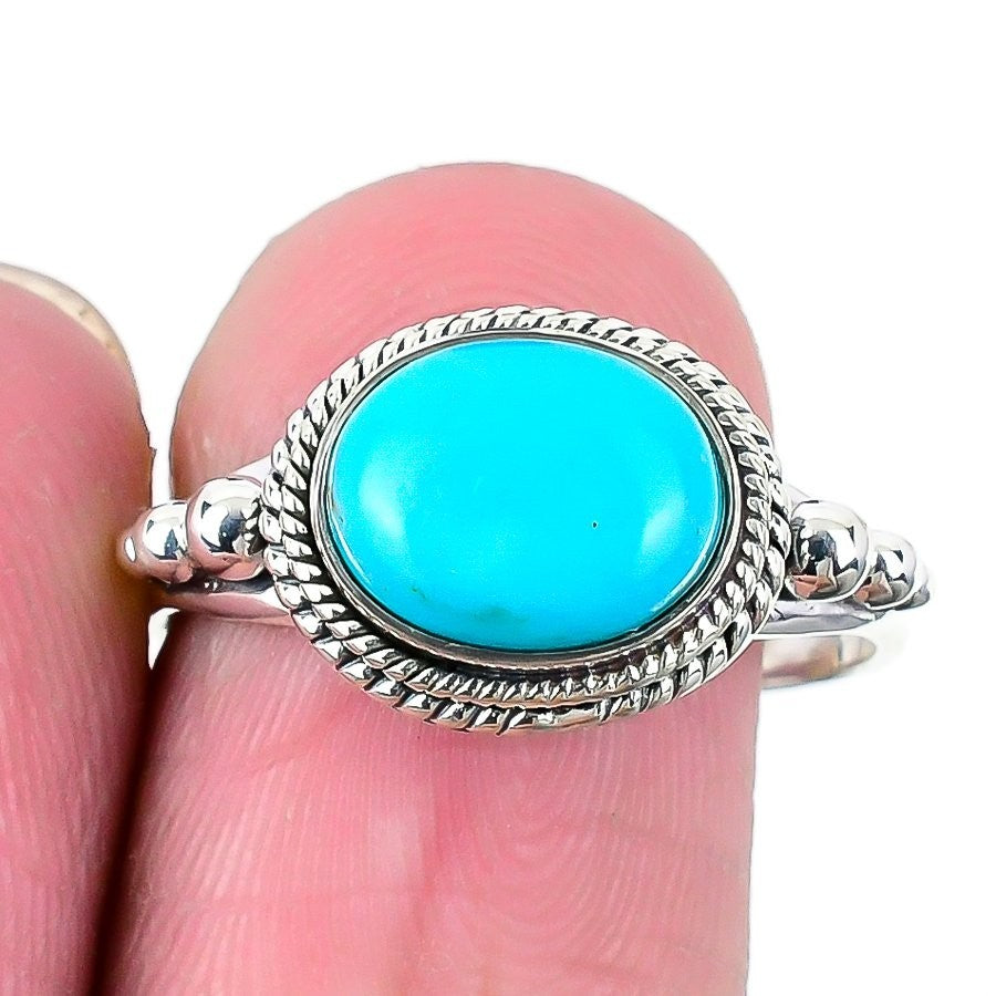 Sleeping Turquoise Stone Solid Sterling Silver Channel Set Cluster Ring Size 9