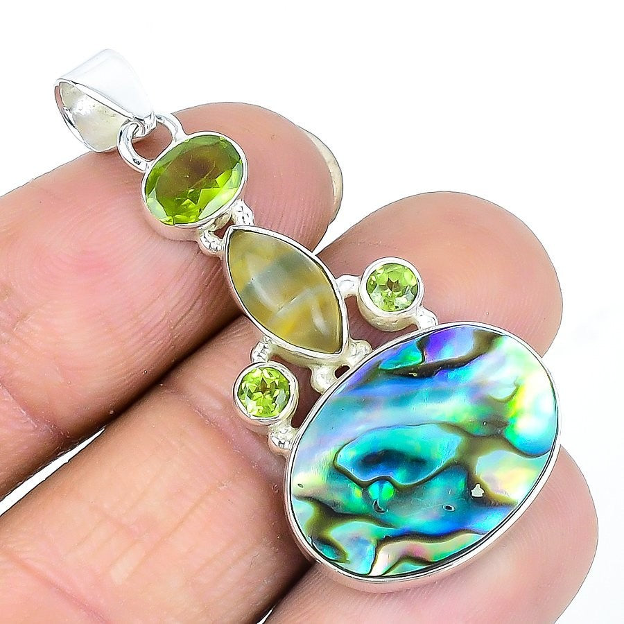 Abalone Shell Gemstone Wife Daughter Gift Engagement Pendant Jewelry 925 Silver