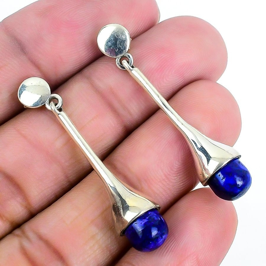 Natural Lapis Lazuli Solid Silver Dangling Daughter Hook Ethnic Earrings Jewelry