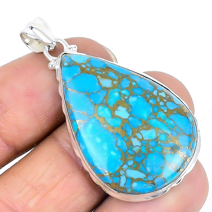 Copper Blue Turquoise Gemstone Sister Daughters Day New Pendant 925Ā SolidĀ Silver