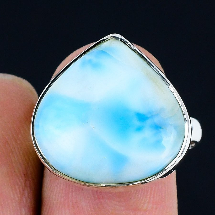 Republic Larimar Gemstone Solid Silver Statement Birthday Ring Jewelry Size 8.5