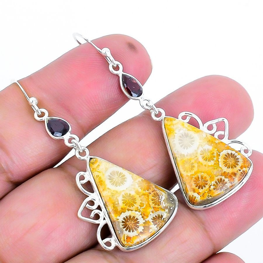 Fossil Coral Gemstone Mother Trendy New Drop Dangle Earrings Jewelry 925 Silver