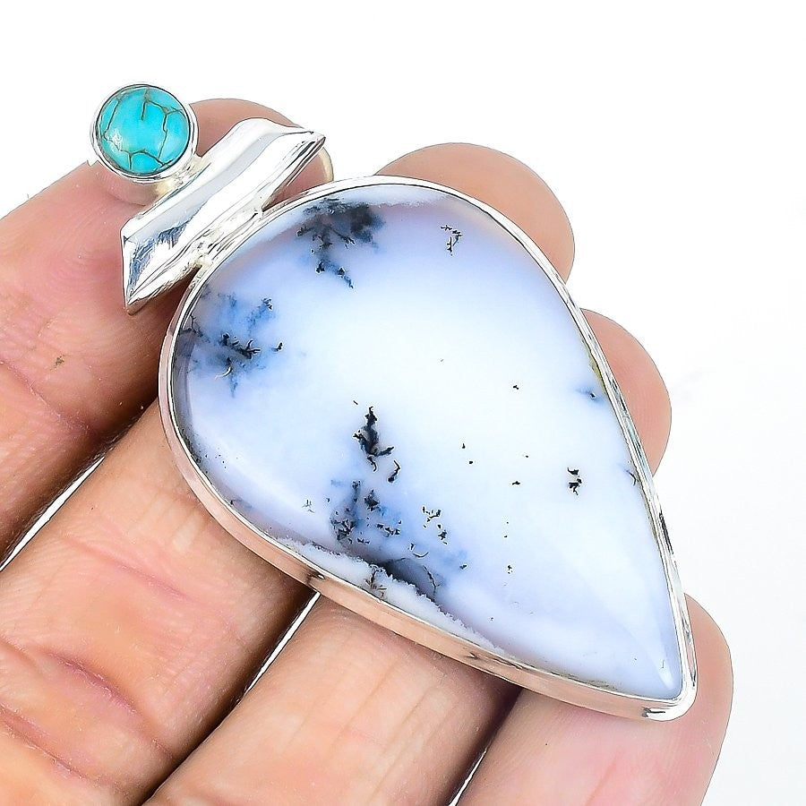 Dendrite Opal Gemstone Solid Silver Trendy Mother Artisan Unique Pendant Jewelry