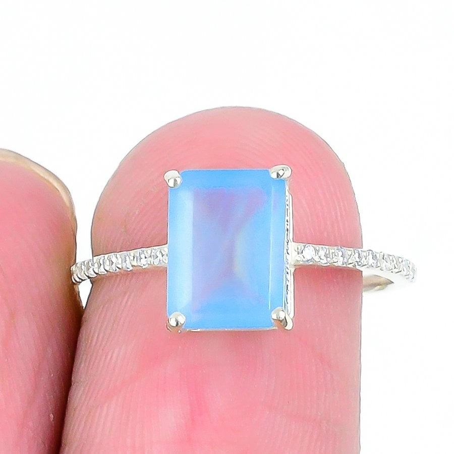 Swiss Blue Topaz Gemstone Sterling Silver Promise Band Boho Ring Jewelry Size 7
