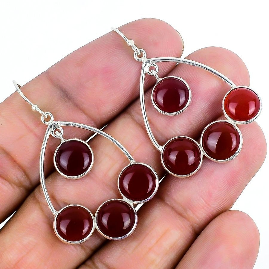 Red Onyx Gemstone Solid Sterling Silver Trendy Dangling Bezel Earrings Jewelry