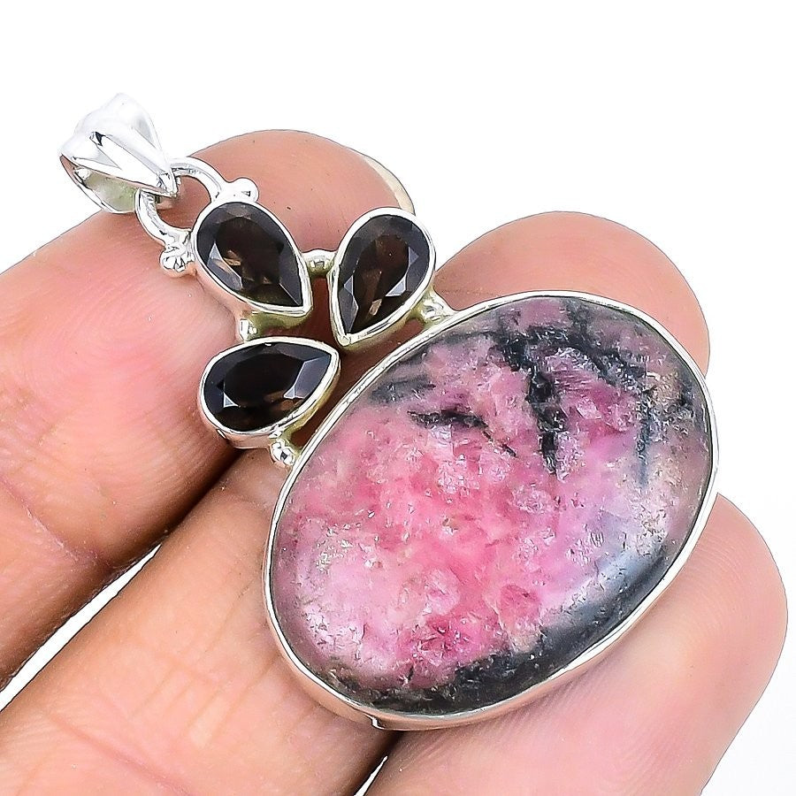 Heart Chakra Natural Rhodonite 925 Sterling Silver Daughters Day Mother Pendant