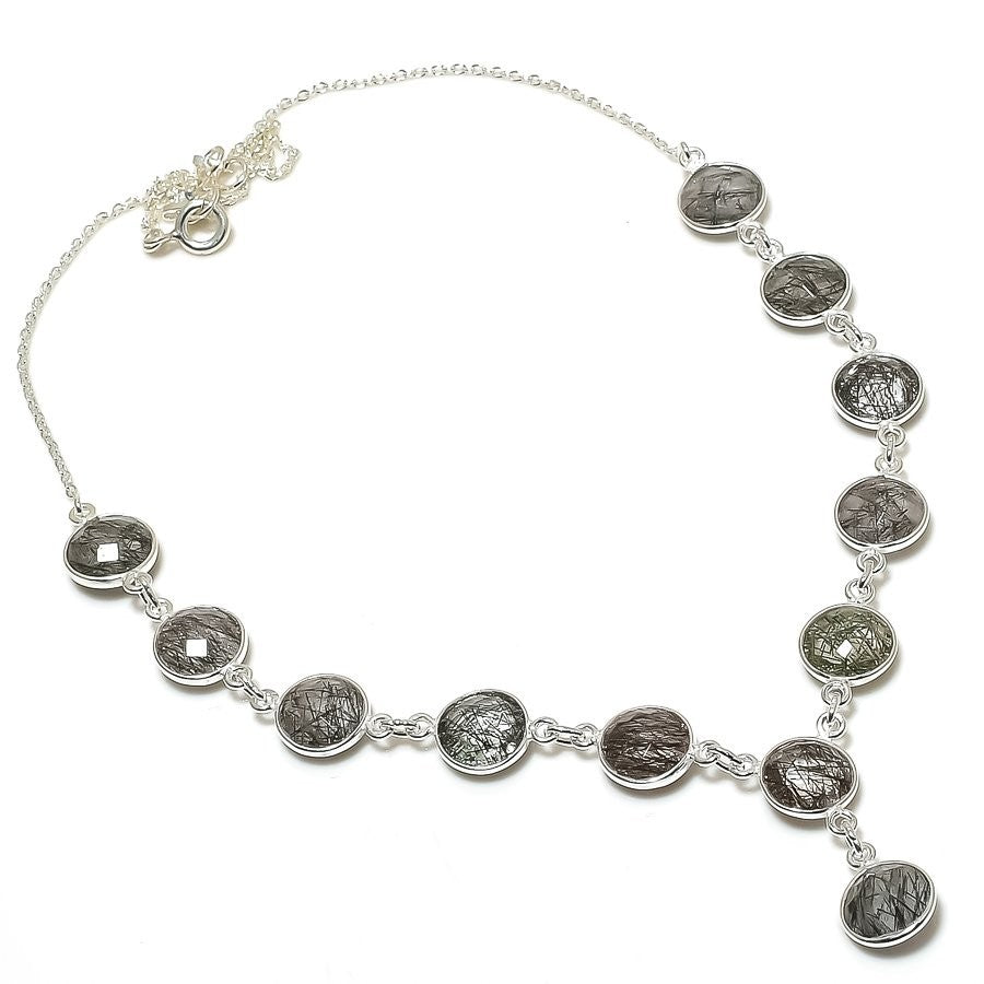 Natural Black Rutile 925Ā SolidĀ Silver Boho Mother Chain Wedding Necklace Jewelry