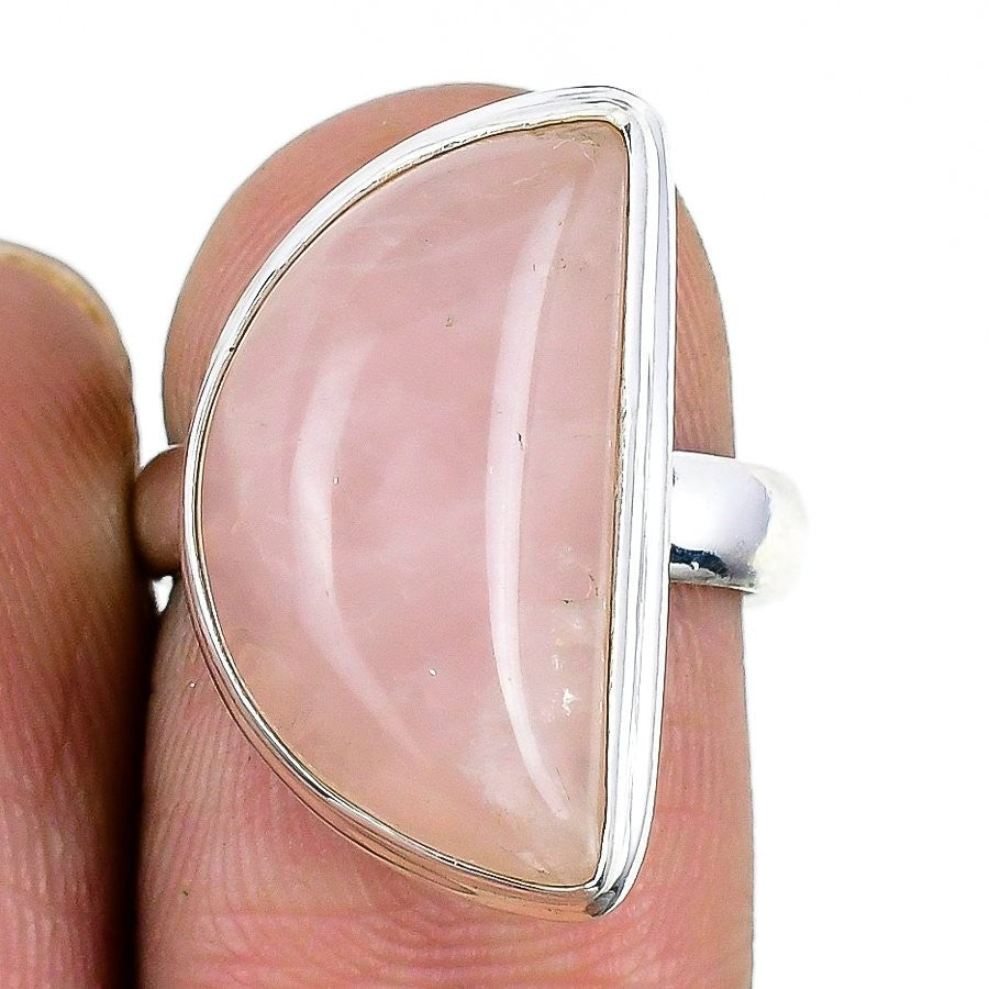 Natural Rose Quartz Bezel Ethnic Wedding Statement Sister Ring 925 Silver US 6.5