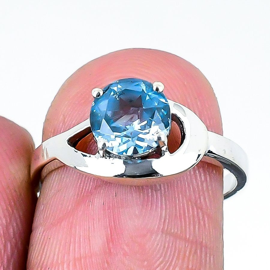 Natural Swiss Blue Topaz 925 Silver Birthday Band Anniversary Ring Jewelry US 7